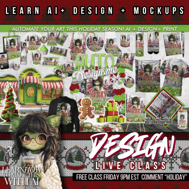 7PM EST DAY-3 Photoshop Demo | AutoDesign.Me Holiday Challenge Free Live Class Day 3 Class Recap: Photoshop Template Tricks for Trendy Designs | AutoDesign.Me Holiday Challenge - PSD-291 11/12 7 pm EST Day 2: Beginner’s Guide to AI Art & Design
