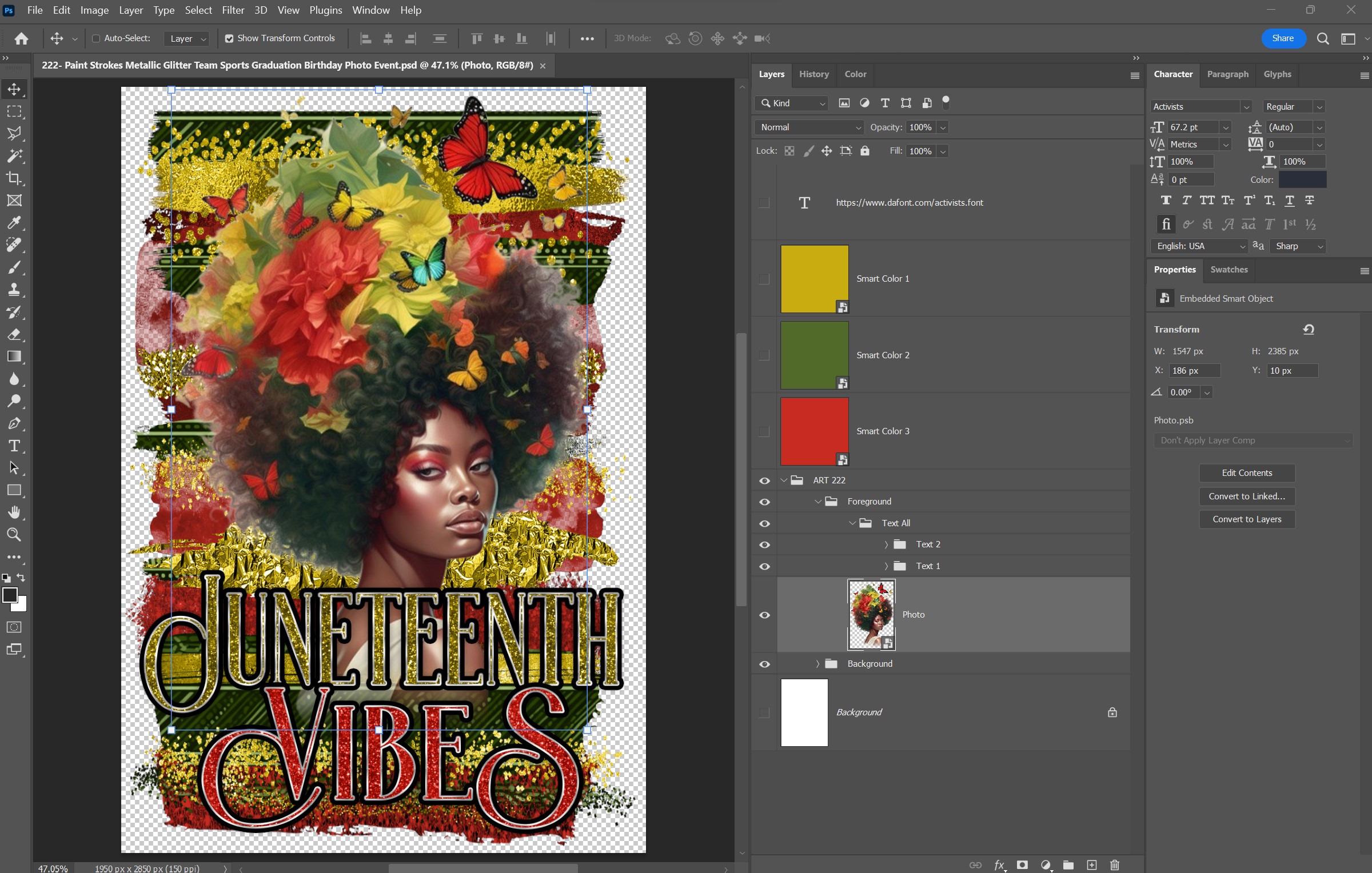 PSD-222: Paint Strokes Metallic Glitter Team Sports Graduation Birthday | Photoshop Template 222